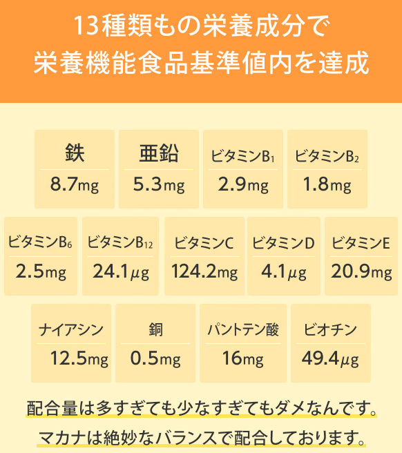 - 13種類の栄養素で栄養機能食品基準を達成!