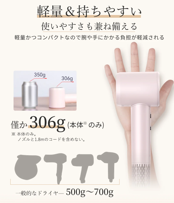 - 風量がすごいのに、熱くないから髪が傷みにくい!